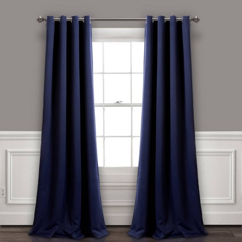 Navy blackout panels. Crafted from polyester this solid-hued curtain showcases a 3 ruffled header and a tailored bottom hem for a modern touch. We recommend the 66-120 Fast Fit Lilly Cage Black Window Decorative Rod 58 with the 2-Pack Navy Geo Embroidered Blackout Grommet Window Panel 84. Join the DecorPad community and share photos create a virtual library of inspiration photos bounce off design ideas with fellow members.